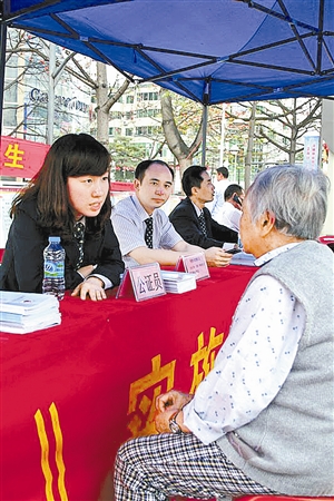 | 3月23日,寶安區(qū)公證處在香繽廣場舉行《公證法》實(shí)施7周年的宣傳活動(dòng)。圖為公證員現(xiàn)場接受市民咨詢。 |